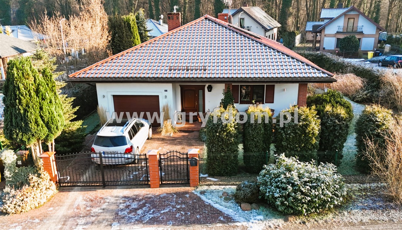 Nieruchomość składa się z: salonu połączonego z aneksem kuchennym, pomieszczenia gospodarczego, dwóch sypialni (z czego jedna z prywatną łazienką oraz wejściem do sauny), garderoby, dwóch łazienek połączonych z WC, sauny, korytarza, wiatrołapu oraz garażu. Dom posiada ogrzewanie podłogowe gazowe, na dachu zainstalowane kolektory słoneczne. Woda podgrzewana jest za pomocą pieca gazowego. Dodatkowo w salonie znajduję się kominek.