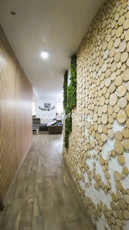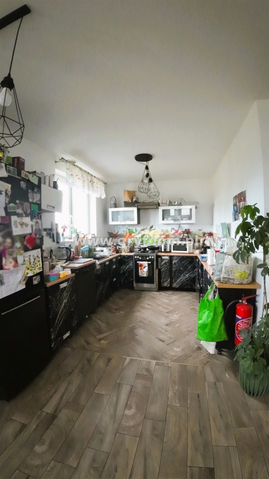 Parter budynku składa się z przestronnego salonu połączonego z kuchnią, łazienki, przedpokoju oraz kotłowni. Na piętrze znajdują się 3 pokoje, z jednego z nich wyjście na balkon, garderoba, łazienka i pomieszczenie gospodarcze. Dom ogrzewany jest piecem węglowym. Media doprowadzone do nieruchomości: instalacja elektryczna, sieć wodociągowa podłączona do studni, ścieki gospodarcze odprowadzane do istniejącego zbiornika bezodpływowego na terenie działki. Posesja w całości ogrodzona i wyposażona w kamery. Dach pokryty blachą dachową. Roczny koszt podatku wynosi około 1000 złotych. Nieruchomość wymaga remontu ,ale posiada duży potencjał. Budynek położony jest w bardzo ładnej i spokojnej okolicy domków jednorodzinnych. W pobliżu znajduję się szkoła,przedszkole, jezioro, ośrodek kultury.
