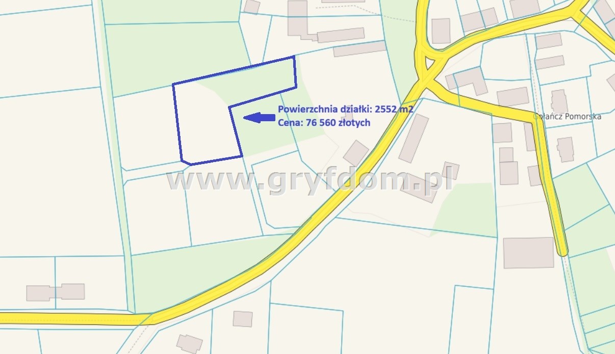 Oferujemy Państwu na sprzedaż działkę budowlaną o powierzchni 2552 m2 w cenie 76 560 złotych, znajdującą się w Gołańczy Pomorskiej oddalonej o 32 km od miejscowości nadmorskiej Kołobrzeg. Działka położona jest w malowniczej okolicy, w sąsiedztwie domków jednorodzinnych. Działka posiada wydane warunki zabudowy - na budowę budynku mieszkalnego jednorodzinnego parterowego z możliwym poddaszem użytkowym, wraz z niezbędną infrastrukturą techniczną. Działka nieuzbrojona. Chętnie odpowiemy na Państwa pytania i Serdecznie Zapraszamy do prezentacji po wizycie w naszym biurze które znajduje się w Gryficach przy ulicy 3-go Maja 10 (przy sklepie Biedronka na przeciwko sądu) lub po uprzednim kontakcie pod numerem telefonu: 509 895 285 lub 885 535 666 .