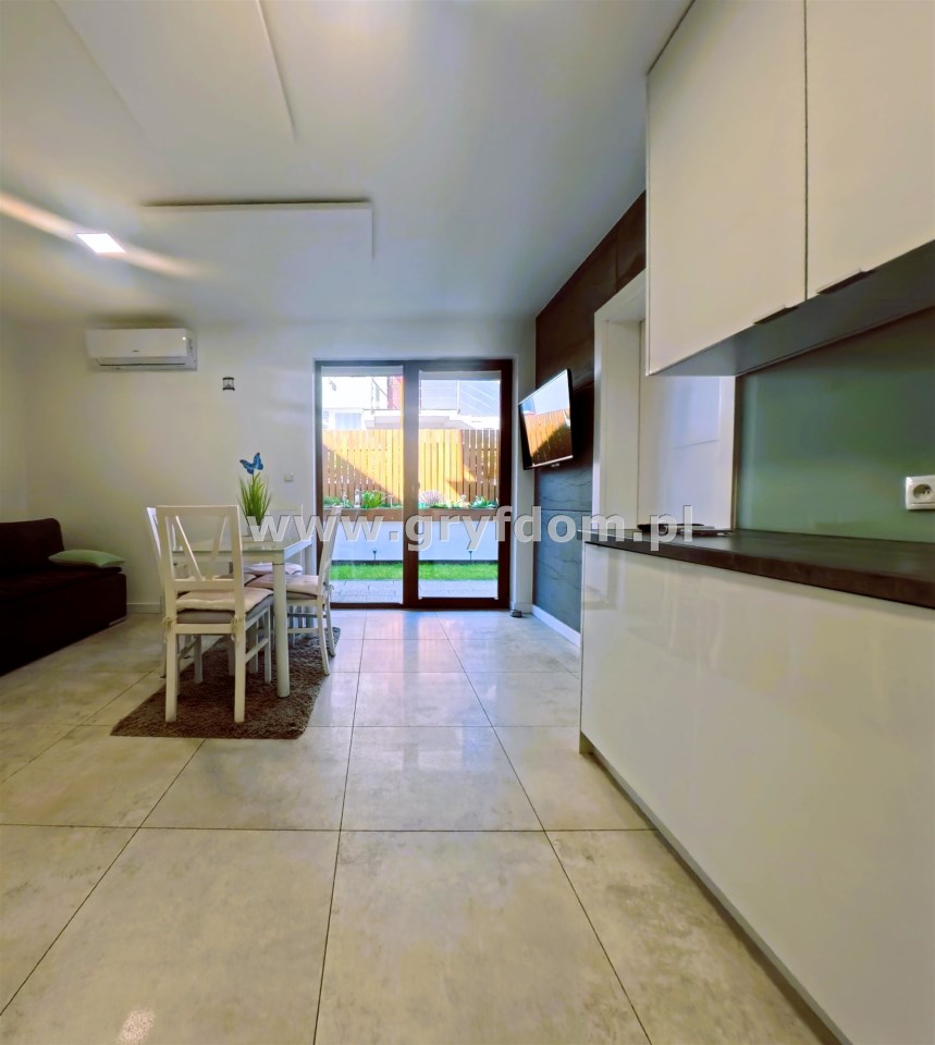 Przedstawiamy Państwu na sprzedaż komfortowy apartament mieszczący się na parterze w miejscowości Niechorze. Nieruchomość ta o powierzchni 28,2 m2 składa się z przestronnego salonu z aneksem kuchennym, sypialni, łazienki wyposażonej w kabinę prysznicową oraz tarasu o powierzchni 32m2. Ogrzewanie sufitowe lub klimatyzacja a w łazience znajduję się grzejnik elektryczny. Okna PCV z roletami zewnętrznymi co gwarantuje doskonałą izolację. Mieszkanie sprzedawane jest z całym wyposażeniem, łącznie ze sprzętem AGD co pozwala na natychmiastowe zamieszkanie lub wynajem. Koszt czynszu wynosi 176 zł plus dodatkowe opłaty za prąd, wodę i śmieci. Teren na którym znajduję się obiekt jest zamknięty. Do nieruchomości przynależy miejsce parkingowe w cenie. Nie wątpliwym atutem apartamentu jest jego położenie, gdyż znajduje się on 600 m od plaży i jest doskonałym miejscem wypadowym lub inwestycją pod wynajem. 0% PROWIZJI DLA KUPUJĄCEGO!Serdecznie Zapraszamy do prezentacji po wizycie w naszym biurze które znajduje się w Gryficach przy ulicy 3-go Maja 10 (przy sklepie Biedronka na przeciwko sądu) lub po uprzednim kontakcie pod numerem telefonu: 509 895 285 lub 885 535 666 .